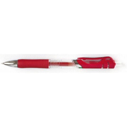 czerwony długopis żelowy posiada ergonomiczny gumowy uchwyt w celu zapewnienia wysokiego komfortu użytkowania i stabilnego uchwytu