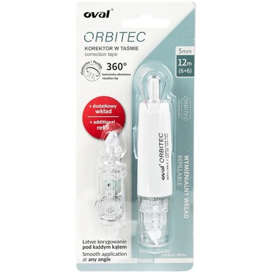 Korektor w taśmie OVAL Orbitek QSR-506/1R 5mmx12m obudowa biała