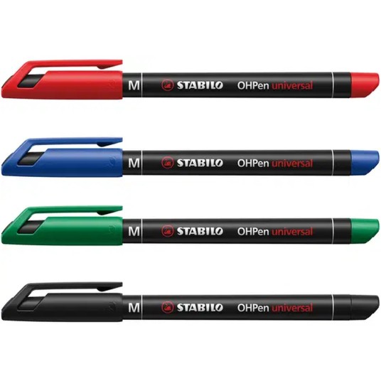 Permanentny foliopis STABILO OHPEN o grubości linii 1,0 mm (rozmiar M), w kolorze czerwonym. Marker nadaje się do pisania na większości gładkich powierzchni — plastiku, metalu, szkle, folii, płytach CD/DVD, błyszczącym papierze — tworząc trwały, wodoodporny i odporny na ścieranie ślad tuszu.
