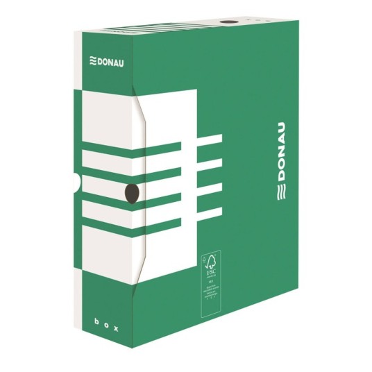 Pudło archiwizacyjne DONAU o szerokości 100 mm wykonane jest z wytrzymałej, trójwarstwowej tektury falistej, która chroni dokumenty przed kurzem, wilgocią i uszkodzeniami. Dzięki bezkwasowemu odczynowi (>7,5 pH) nadaje się do długotrwałej archiwizacji. Konstrukcja wyposażona w pięć otworów ułatwia przenoszenie, a pięć ścian opisowych wspomaga organizację zawartości. Specjalny design umożliwia ustawianie pudła zarówno na krótszym, jak i dłuższym boku. Produkt posiada certyfikat FSC i mieści do 1000 kartek o gramaturze 80 gsm.