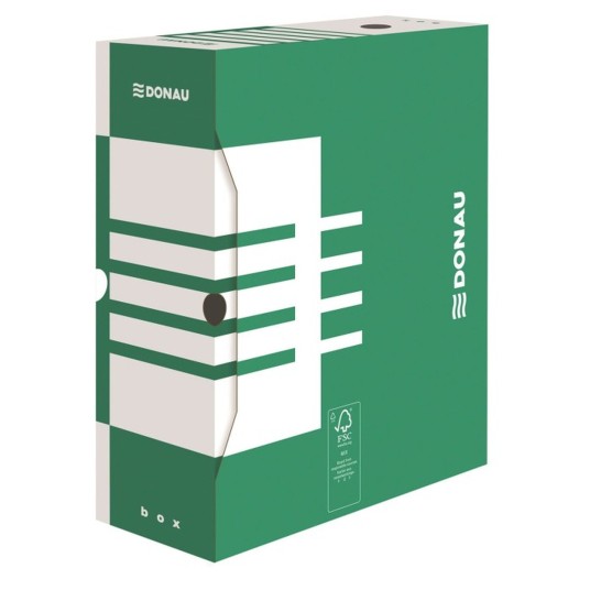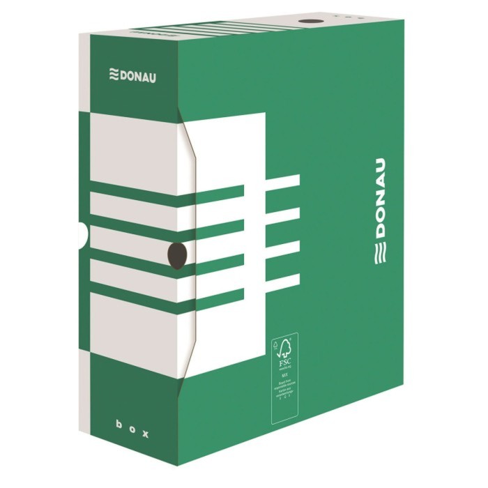 Pudło archiwizacyjne DONAU o szerokości 120 mm wykonane z trójwarstwowej tektury falistej zapewnia trwałą ochronę dokumentów przed kurzem, wilgocią i uszkodzeniami. Bezkwasowy odczyn (>7,5 pH) sprawia, że nadaje się do długotrwałego przechowywania akt. Konstrukcja zawiera pięć otworów ułatwiających przenoszenie i zdejmowanie pudeł z półek oraz pięć ścian opisowych, dzięki którym można wygodnie oznaczyć zawartość. Specjalny design umożliwia ustawianie pudła zarówno na krótszym, jak i dłuższym boku. Produkt posiada certyfikat FSC i mieści do 1200 kartek.
