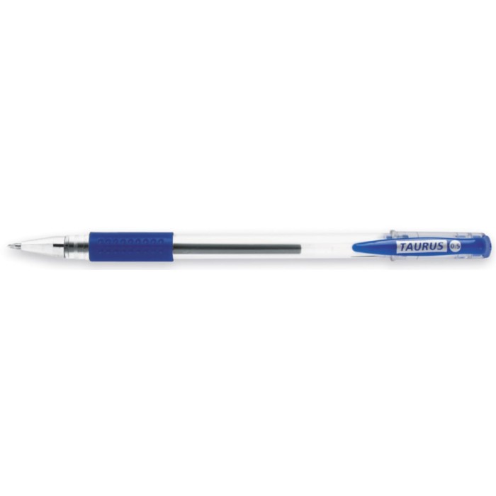 niebieski długopis żelowy jest wyposażony w ergonomiczny gumowy uchwyt, dzięki któremu używanie produktu jest stabilne i wygodne
