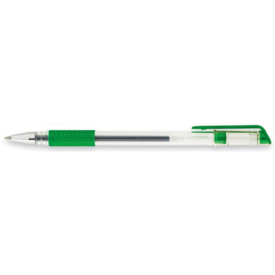 zielony długopis żelowy jest wyposażony w ergonomiczny gumowy uchwyt, dzięki któremu używanie produktu jest stabilne i wygodne