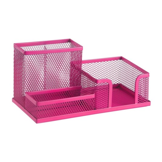 Przybornik organizer LEVIATAN siatka metalowa wielofunkcyjny kol. różowy 3 komory [009988]