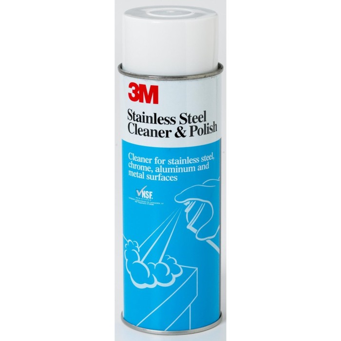 Środek do pielęgnacji stali nierdzewnej 3M™ SSC to wydajny spray, który poleruje i chroni powierzchnie ze stali nierdzewnej w jednym kroku. Tworzy niewidzialną powłokę odporną na odciski palców i zabrudzenia. Bezpieczny do stosowania w miejscach przygotowywania żywności, nie zawiera szkodliwych substancji chemicznych i ma przyjemny cytrusowy zapach. Idealny do czyszczenia kuchni komercyjnych, elementów architektonicznych, takich jak windy i schody ruchome.