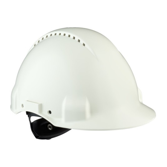 Wybierz hełm ochronny 3M™ serii G3000 dla ochrony głowy w trudnych warunkach. Hełmy ochronne spełniają wymagania normy EN 397:212+A1:2012, również przy obróceniu więźby o 180° (tyłem do przodu) Nasz hełm jest dostępny z więźbą standardową typu pinlock lub regulacją śrubową oraz wykonaną z tworzywa sztucznego lub ze skóry opaską przeciwpotną. Posiada lekko zaokrągloną konstrukcję, która zapewnia dobre pole widzenia i ogranicza zaczepianie się części hełmu o przewody i gałęzie. Jest dostępny w wersji z otworami wentylacyjnymi rozmieszczonymi na dużej powierzchni dla maksymalnego przepływu powietrza, co zwiększa komfort użytkownika lub w wersji bez otworów. Krótki daszek zapewnia lepszą widoczność do góry, a opatentowany wskaźnik 3M™ Uvicator™ pomaga określić użytkownikowi, kiedy należy wymienić hełm ze względu na jego nadmierne zużycie pod wpływem działania promieni ultrafioletowych UV. Nagłowie można obrócić o 180°, co zapewnia lepszą widoczność podczas pracy w przestrzeni zamkniętej. Hełmy spełniają wymagania normy EN 397:212+A1:2012 z taśmami nagłowia obróconymi o 180° (tyłem do przodu), natomiast wersje izolowane elektrycznie spełniając wymagania normy EN 50365:2002 do stosowania przy instalacjach o niskim napięciu.