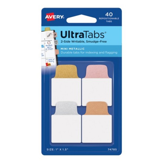 Zakładki indeksujące 25,4 x 38,1 mm tworzywo AVERY ULTRA TABS wielokolorowy 40 zakładek metaliczne 74785