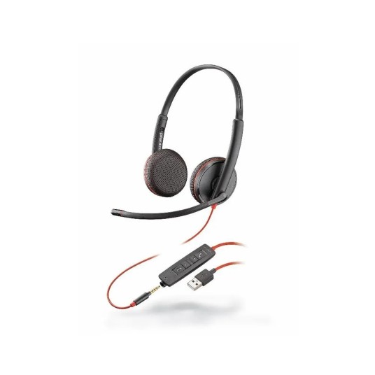 Słuchawki nauszne PLANTRONICS Blackwire C3225 (209747-101) to przewodowy zestaw z mikrofonem, zoptymalizowany do pracy biurowej i wideokonferencji. Wyposażone w wygodny pałąk na głowę oraz przewód z końcówką USB-A (lub USB-C w niektórych wersjach) i minijack 3,5 mm, zapewniają wysoką jakość dźwięku i skuteczne wyciszanie hałasu z otoczenia.