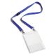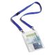 Identyfikator DURABLE z karabińczykiem pionowy kol. przezroczysty format A6 z kieszonką na wizytówki i granatową taśmą 852507
