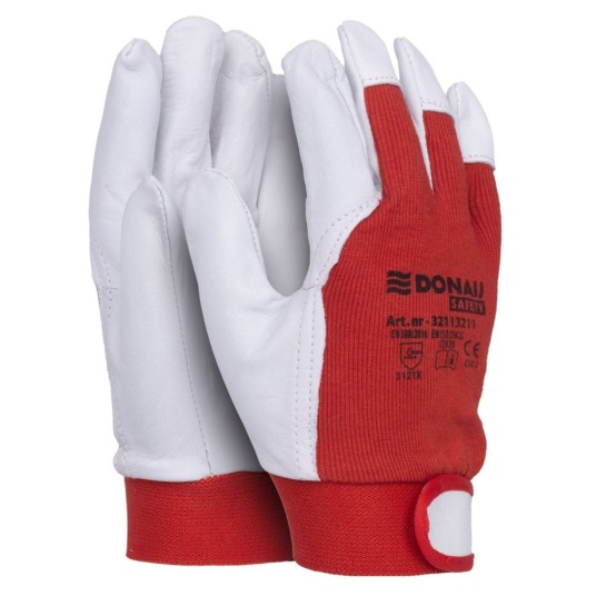 Rękawice robocze DONAU Safety kat. II kol. biało-czerwony rozmiar 9 skóra kozia 1 para 32113211-09