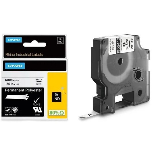 Taśma DYMO 1805442 kol. czarny na białym 6mm x 5,5m Rhino IND poliestrowa