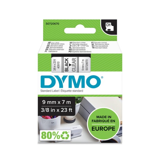 Taśma DYMO 40910 / S0720670 kol. czarny na przezroczystym 9mm x 7m D1