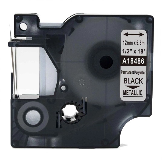 Taśma SPECMARK E18486 do Dymo 18486 / S0718180 kol. czarny na metalicznym 12mm x 5,5m Rhino IND