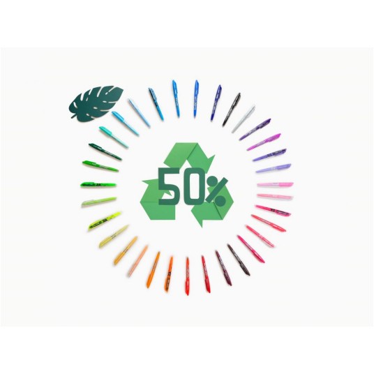 zakreślacz jest wykonany z co najmniej 50% materiałów z tworzyw sztucznych pochodzących z recyklingu (z wyłączeniem wkładów oraz opakowań)
