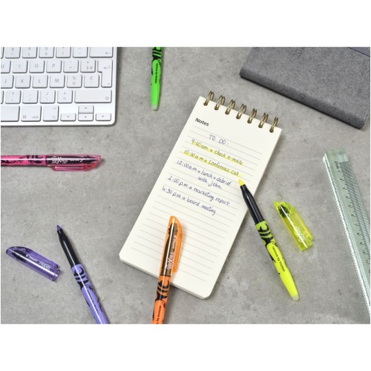 zakreślacz wymazywalny w kolorze różowym jest wykonany z wykorzystaniem technologii Frixion