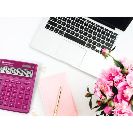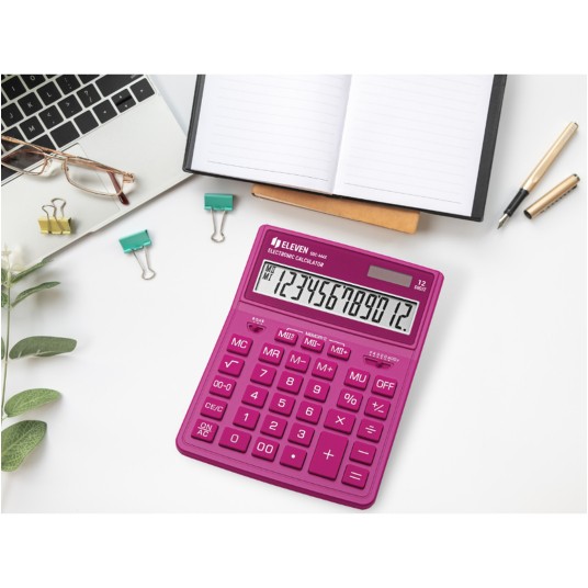 Kalkulator Eleven SDC444XRPKE to elegancki i funkcjonalny model do użytku biurowego lub szkolnego. Posiada kompaktowe wymiary i wyróżnia się przyjemnym kolorowym wykończeniem. Wyposażony w podstawowe funkcje arytmetyczne, podwójny system zasilania oraz duży, czytelny wyświetlacz — idealny do codziennej pracy z dokumentami i liczbami.