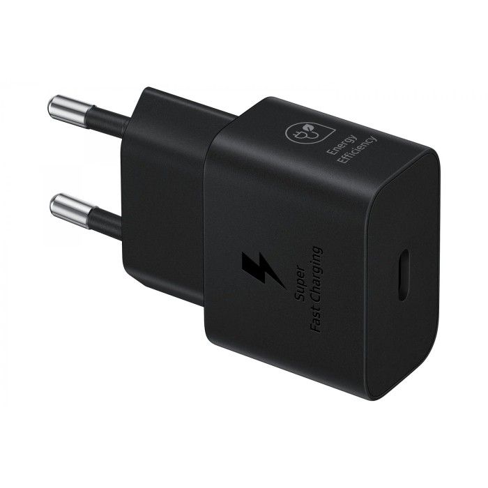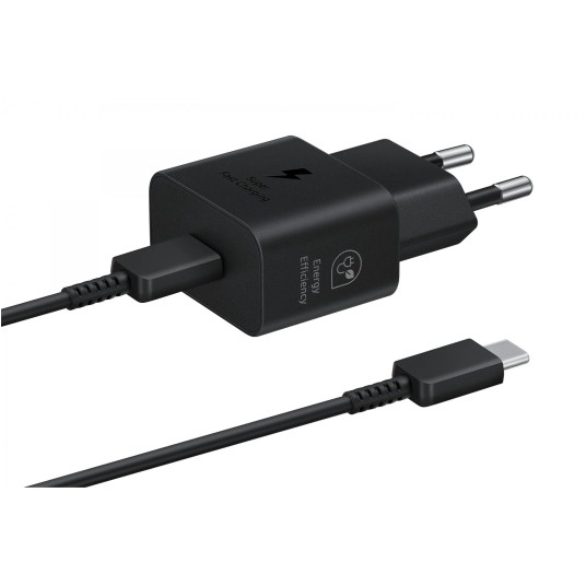 Szybka ładowarka sieciowa Samsung EP-T2510XBEGEU o mocy 25 W z dołączonym kablem USB-C, zapewniająca efektywne i bezpieczne ładowanie smartfonów i urządzeń zgodnych z technologią fast charge. Idealna do codziennego użytku w domu, biurze czy podróży.