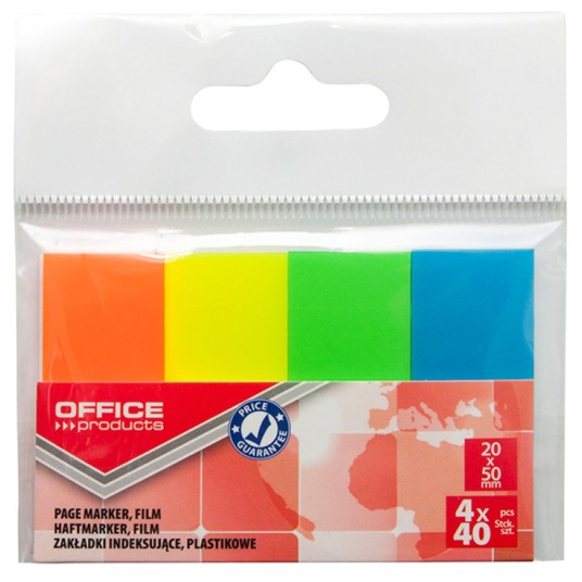 Zakładki indeksujące 20 x 50mm tworzywo OFFICE PRODUCTS wielokolorowy neonowy 160 zakładek (4 x 40) 14223524-99