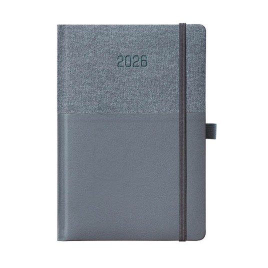 Kalendarz 2026 książkowy A5 dzienny registry drukowane z gumką JOTAN Duo kol. szary KD182