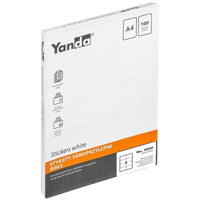 Etykiety uniwersalne papierowe YANDA 105 x 74 mm kol. biały 800 szt. [150-1468]