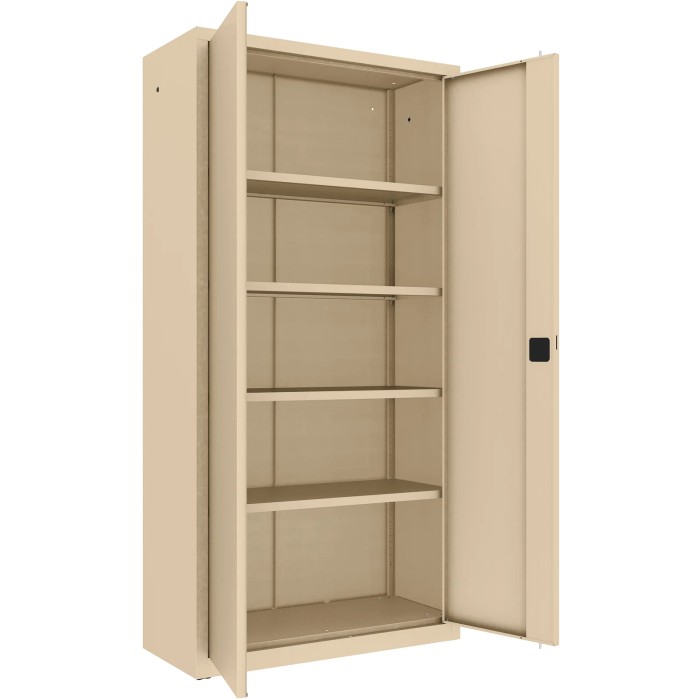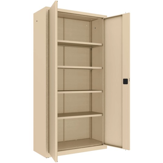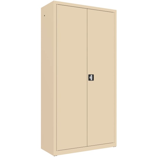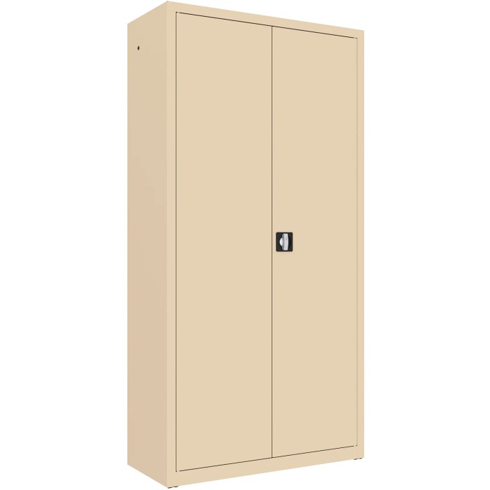 Szafa biurowa wykonana w całości z metalu, w kolorze beżowym (RAL 1015), przeznaczona dla zastosowań biurowych — doskonała do przechowywania dokumentów i sprzętu w środowisku pracy.