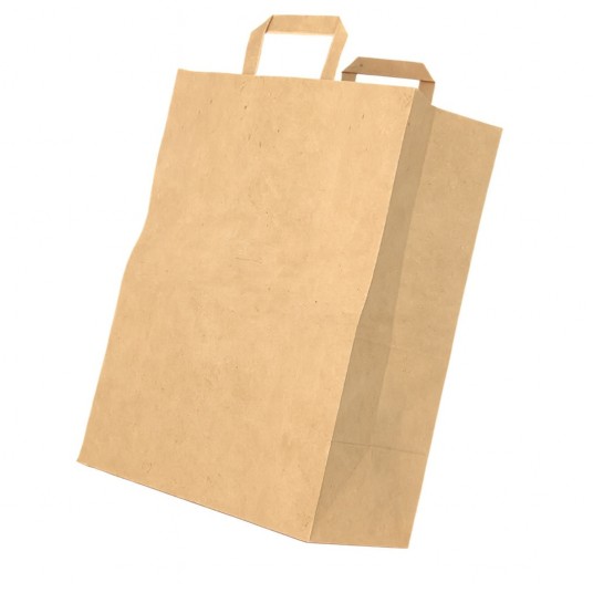 Papierowa torba prezentowa z płaskim uchwytem, odpowiednia do pakowania prezentów lub lekkich przedmiotów. Wykonana z papieru o wyższej gramaturze dla lepszej wytrzymałości.