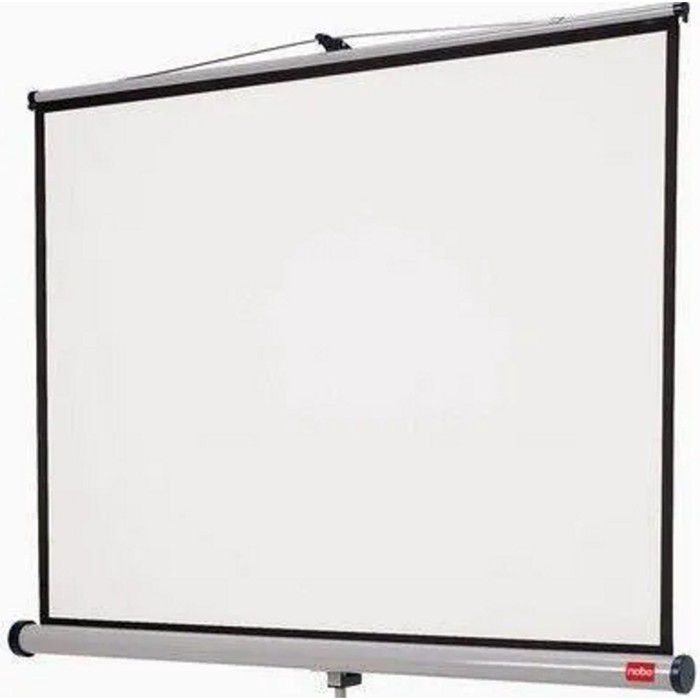 Ekran projekcyjny NOBO Tripod Mobile Screen White to mobilny ekran manualny o wymiarach 150 × 150 cm i proporcjach 1:1, wykonany z wysokiej jakości białego płótna. Model przeznaczony jest do montażu na trójnogu, który należy dokupić osobno. Idealny do prezentacji, szkoleń oraz zastosowań domowych, gdzie liczy się łatwy transport i szybki montaż.