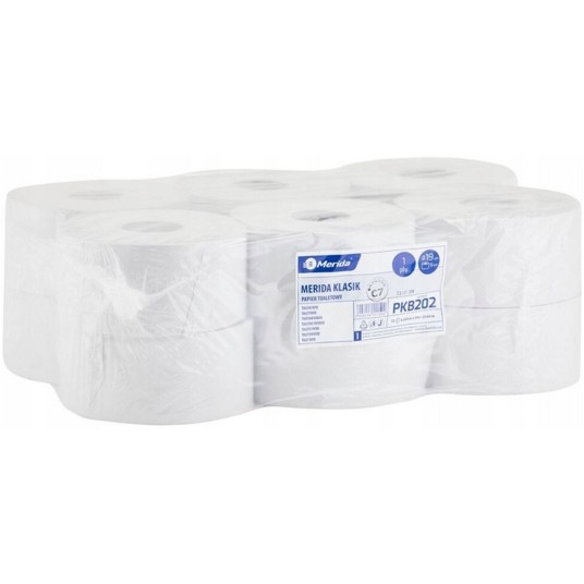 Papier toaletowy makulaturowy 1 warstwa kol. biały MERIDA Classic | Ø190mm szer. 90mm dł. 220m | 12 rolek [PKB202]