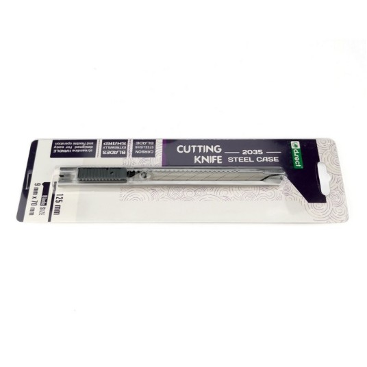 Nożyk mały 2035 to precyzyjne narzędzie idealne do prac plastycznych, introligatorskich i majsterkowania. Dzięki wzmocnionemu ostrzu prowadzonemu w metalowej szynie, zapewnia stabilność i bezpieczeństwo podczas użytkowania. Kompaktowe rozmiary i ergonomiczny kształt ułatwiają obsługę, a solidna metalowa obudowa zwiększa trwałość nożyka.