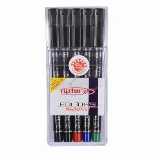 Foliopis do CD/DVD permanentny RYSTOR OHP końcówka F 0,6mm kpl. 4 kol. czerwony, zielony, niebieski + 2 x czarny [437-528-5]