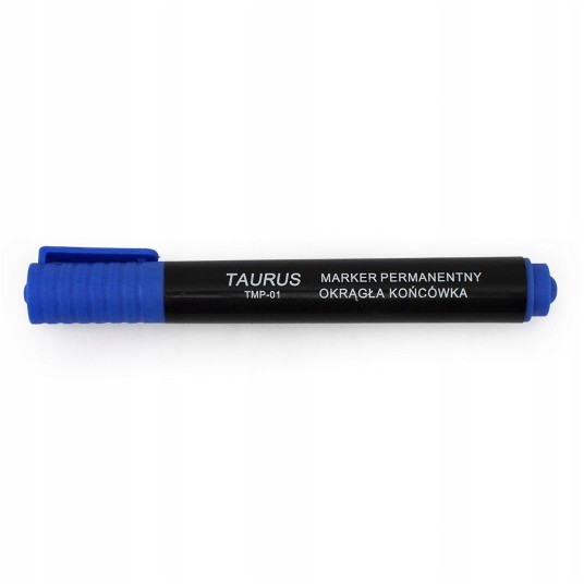 marker permanentny w kolorze niebieskim jest wyposażony w okrągłą końcówkę